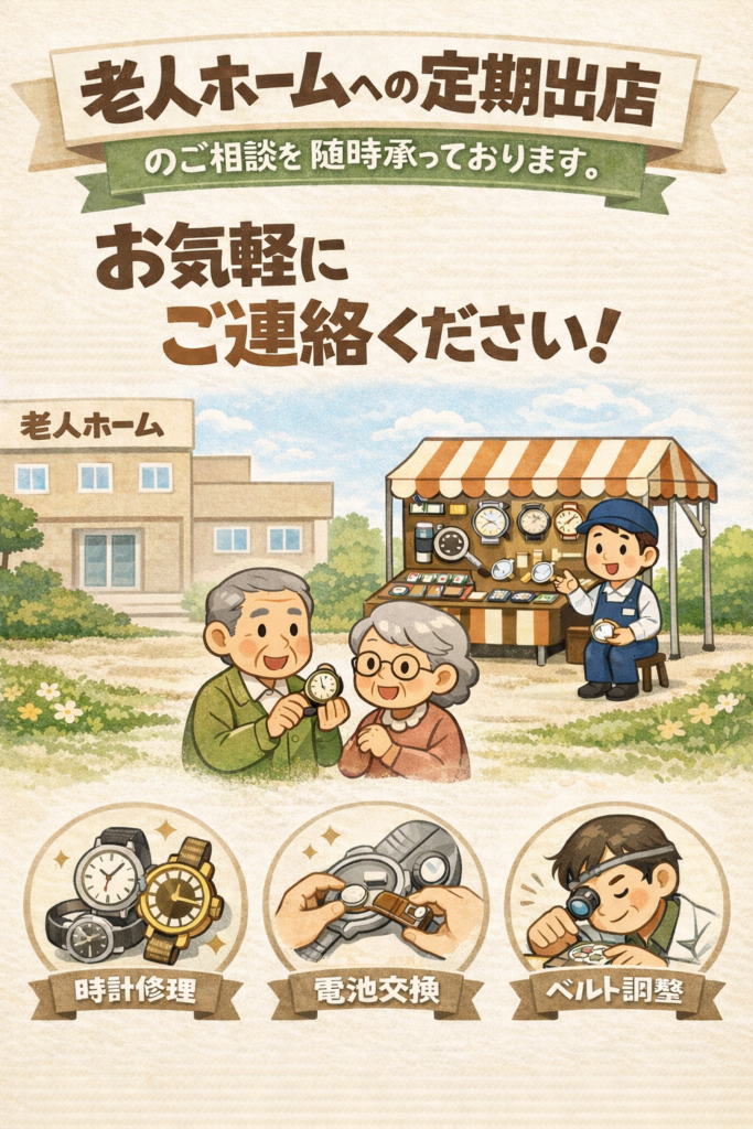 【出張サービス】老人ホーム・介護施設への「時計修理の定期出店」を承ります